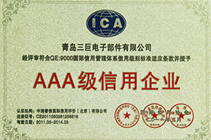 青島三巨電子部件有限公司獲得中瑞普信國(guó)際信用評(píng)價(jià)(北京)有限公司AAA級(jí)信用企業(yè);